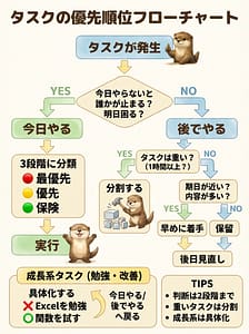 どれだけ工夫しても、その日のタスクをこなせない日は必ずあります。 これは失敗ではなく、前提条件です。 問題は「できなかったこと」ではなく、できなかった日のあと、どう扱うかです。 この記事では、タスクをこなせなかった日を翌 […]